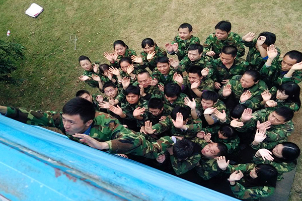 時間。大家一致推選營銷副總擔(dān)任總司令,并制定出在1個小時內(nèi)完成的目標(biāo)。項目是要求每位成員都要翻越4米多高的光滑墻面,且不能